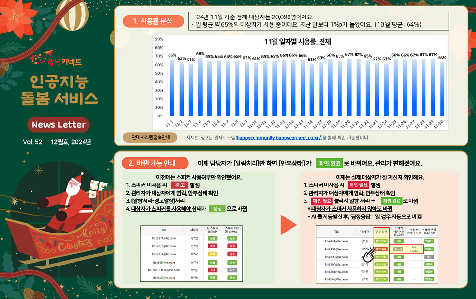인공지능 돌봄 뉴스레터 24년 12월호(Vol 52)김 행복2024년 12월 10일0분 분량인공지능 돌봄 뉴스레터_24년 12월호(Vol 52)_외부용.pdfPDF 다운로드 • 851KB